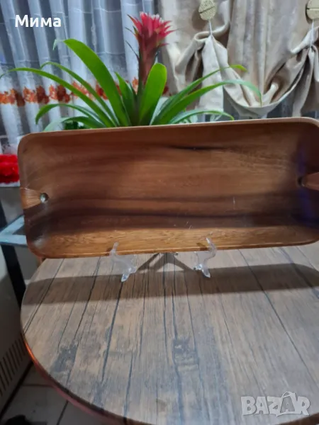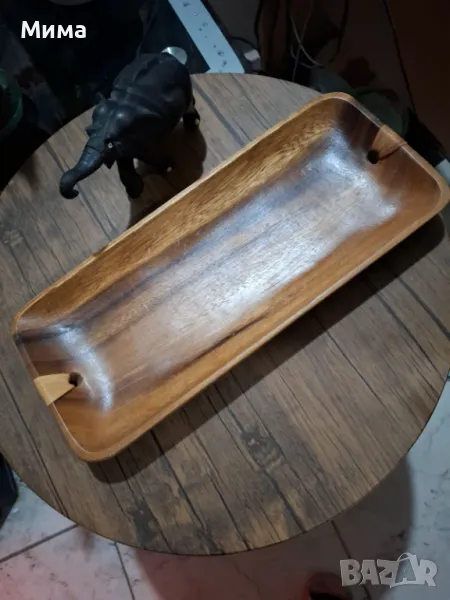 Оригинален дървен поднос от тиково дърво. Дължина 36 см. широчина 16 см. и дълбочина 5 см.