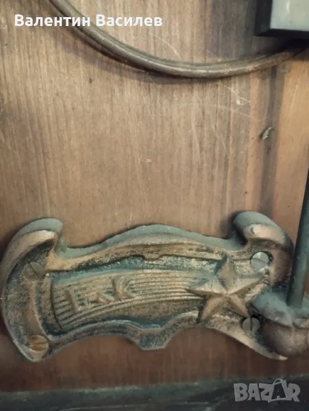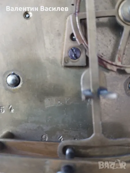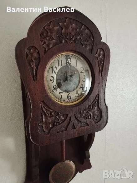 Работи и бие на кръгъл и половин час.Дълбока и отлично запазена резба.Циферблата и махалото са украсени с еднакви стилизирани елементи.Изключително мелодичен звук постигнат чрез гонг с резонатор Млък безшумен ход на махалото и дълъг запаз на пружината за хода повече от 10 дена.Има лого на производителя на машината ,за съжаление не го намерих,вероятно Франция или Швейцария.