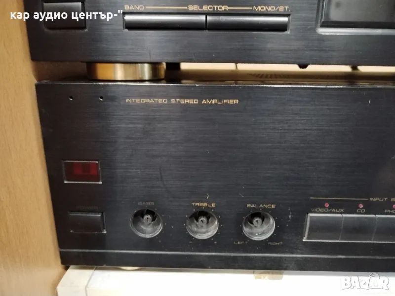 Усилвателя му липсват трите копчета-врътките имат нужда от профилактика,смазване или почистване, шумят при въртене,има опция за дистанционо,очудващо добър звук и мощност има. Цената е за двете заедно.