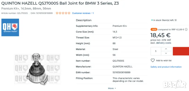 За допълнителна информация посетете www.qhwebcat.com/en/ball-joint/50476-ball-joint-brand-quinton-hazell-and-reference-qsj7000s-5016593616899.html ;