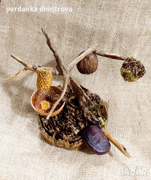 Зарадвайте с уникален подарък! Само за ценители пчелалари! Композиция от естествени материали и медена пита.