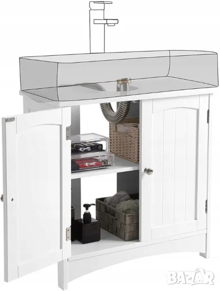 Тоалетният шкаф с чекмеджета предлага идеално решение за съхранение на бани. С врата на панти и 3 чекмеджета, както и вдлъбнатина за сифон.