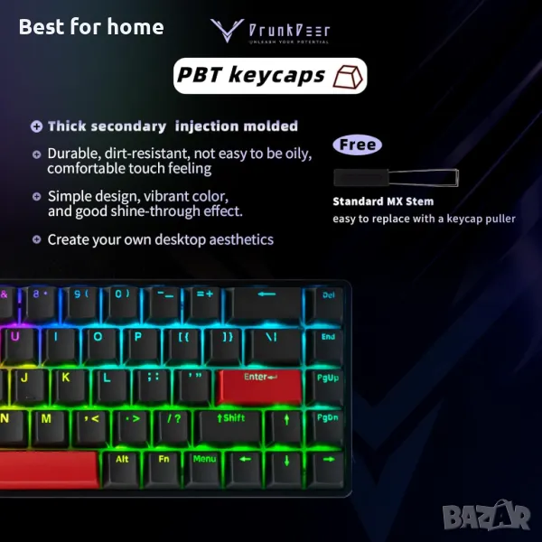 DrunkDeer G65 Rapid Trigger Механична клавиатура Магнитен превключвател Gaming PBT Keycap RGB Кабелен 65% размер USB Компактен Anti-Ghost черен.