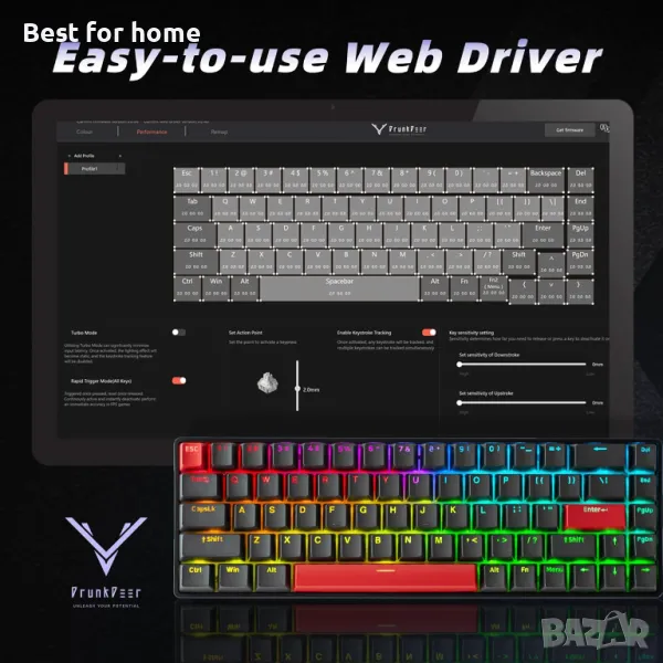 Саморазработен уеб драйвер - DrunkDeer Anlter: Можете да персонализирате стойността на ключа и ефекта на RGB подсветката върху драйвера според вашите нужди или предпочитания.