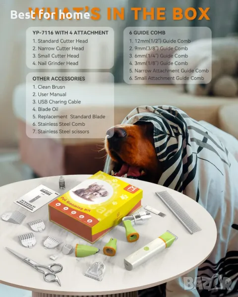- Лесен за стартиране: Изисканият пакет включва 4 стандартни водещи гребена за приставка (3 мм, 6 мм, 9 мм, 12 мм), тесен водач за прикрепване и малък (подробен) водач за прикрепване. можете свободно да контролирате дължината на козината на домашни любимци, ако е необходимо, като прикрепите направляващ гребен, дори ако никога не сте го използвали преди. Препоръчително е да изкъпете и изсушите вашите.