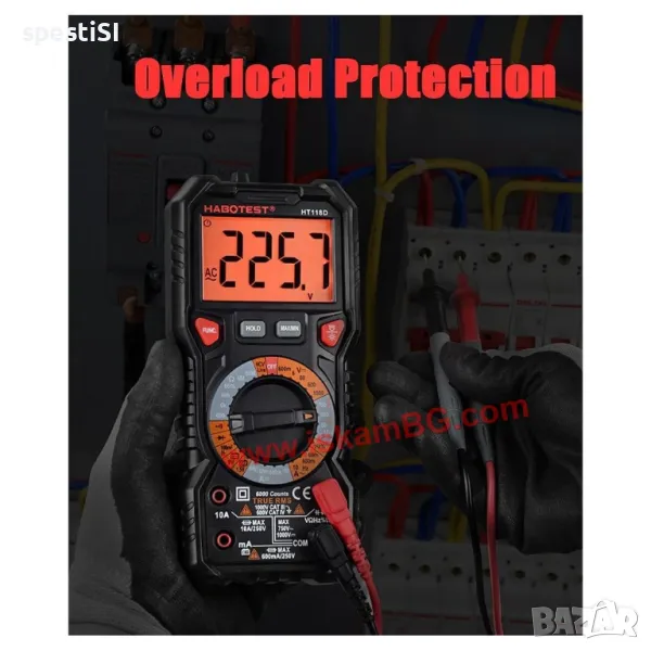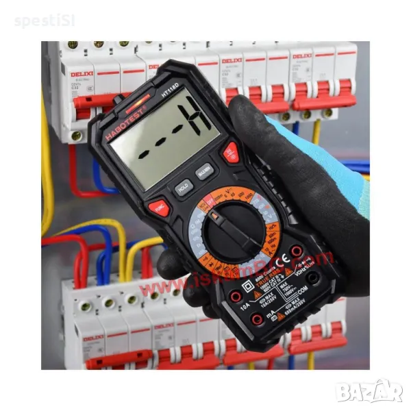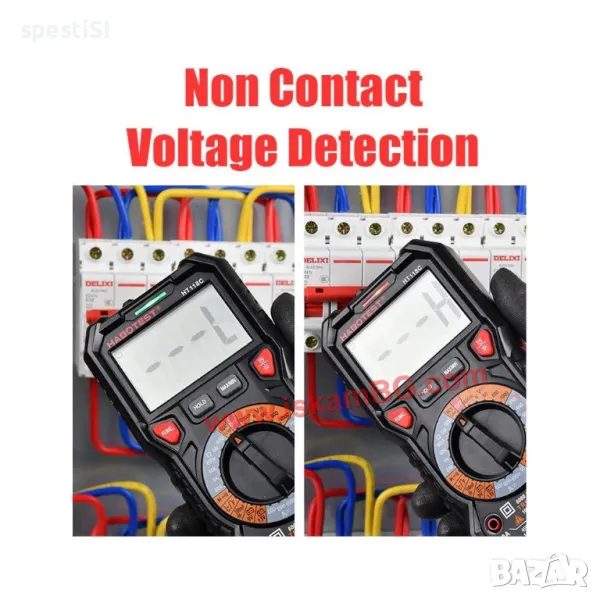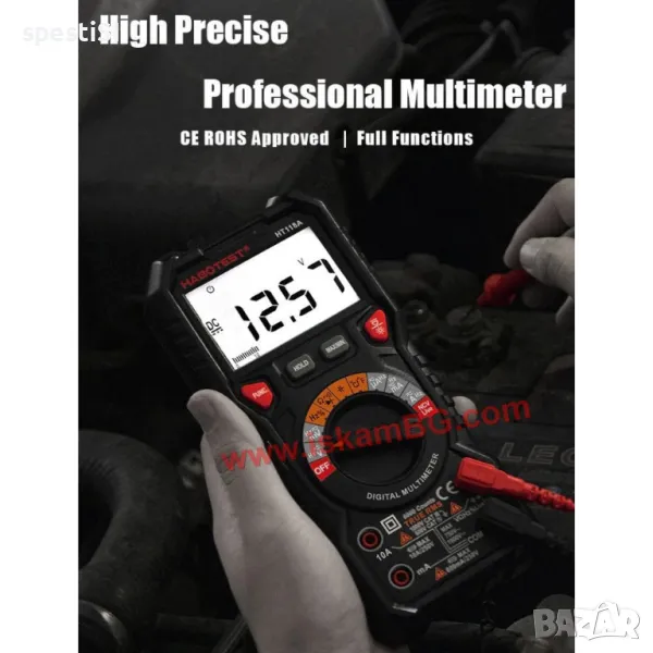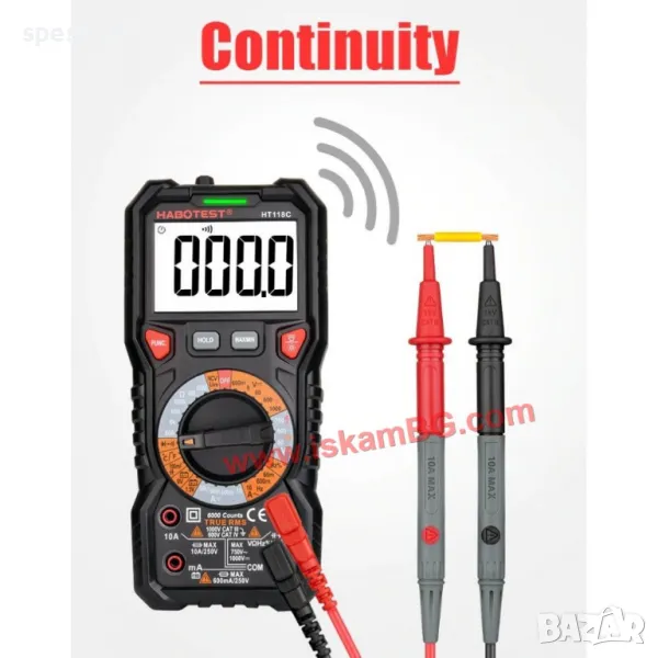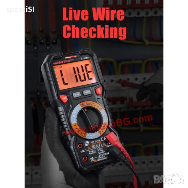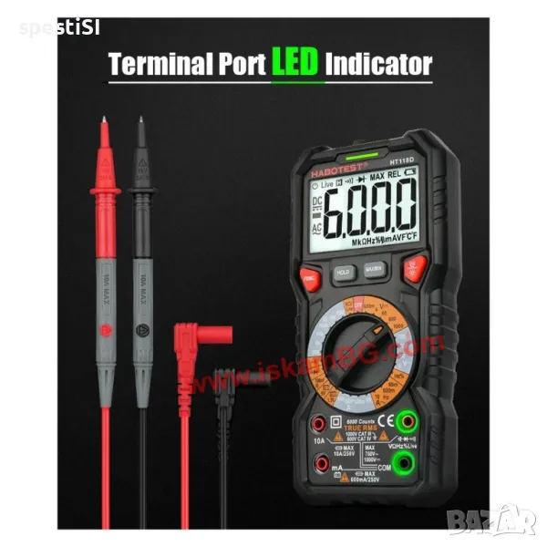 Този висококачествен мултицет е идеален инструмент за измерване на капацитет, температура, AC/DC напрежение, AC/DC ток, съпротивление (Ohm), непрекъснатост, NCV/Live, както и за прецизни измервания с True RMS и MAX/MIN функции.