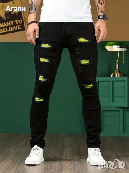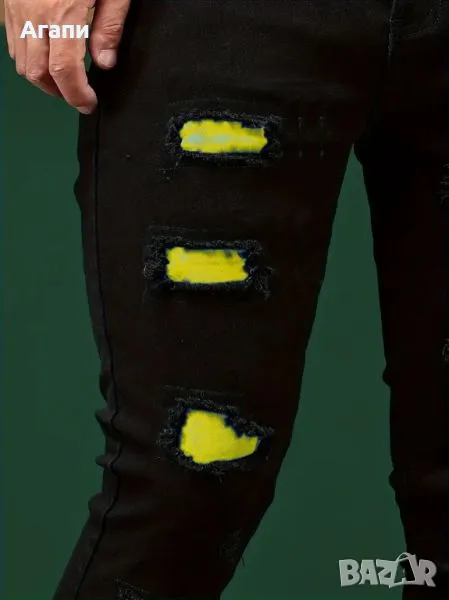 Мъжки накъсани дънки черно и жълто № 32 или М нови → Обява 49565593
