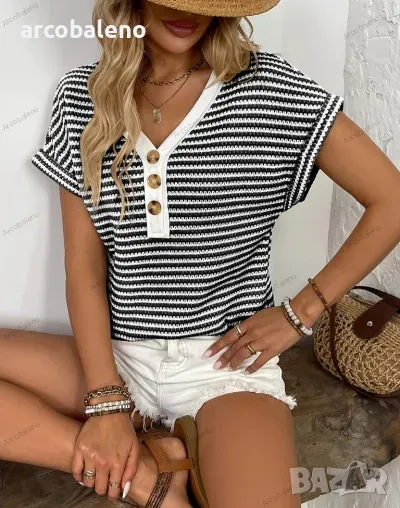 Дамски тениски с къси ръкави, копчета и V-образно деколте, 5цвята