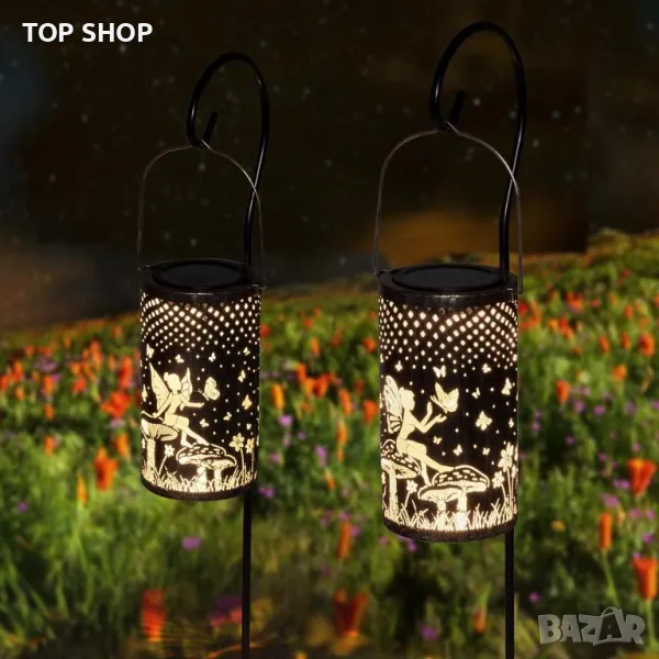 Freekite 2 бр. соларни фенери за открито, IP65 водоустойчиви бронзови метални ангелски пеперуди
