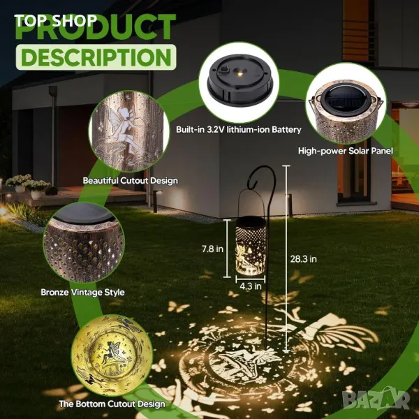 Тези модернизирани слънчеви фенери разполагат с по-големи, по-ефективни слънчеви панели, дълготрайни литиеви батерии и светодиоди с висока мощност за подобрена яркост и проекция. С размери 11 Ш x 20 В с 72 см В стойка за овчарска кука, металните фенери са здрави, издръжливи и красиво проектирани. С IP65 водоустойчив рейтинг, те са идеални за употреба на открито. Лесни за работа, фенерите светят автоматично привечер след зареждане на пряка слънчева светлина. Лесни за поставяне на маси или окачени с помощта на включената дръжка и стойка за овчарски куки. добавяйки възхитителна атмосфера към всяка градина, морава или вътрешен двор.
