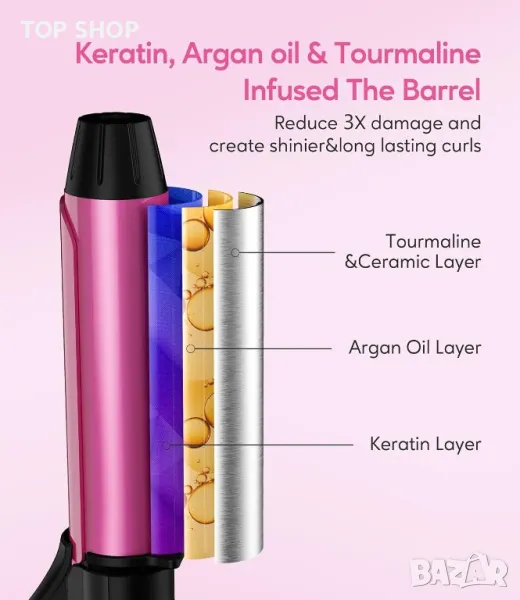 FARERY Керамична мини маша за къдрене с кератин и арган, 25 мм