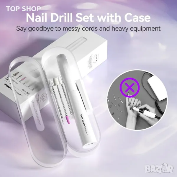 TOUCHBeauty Електрическа пила за нокти с акрилен лак, комплект за маникюр и педикюр с калъф