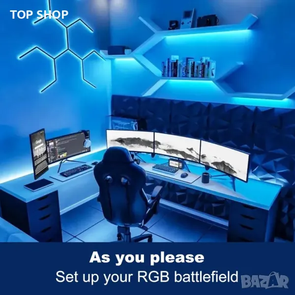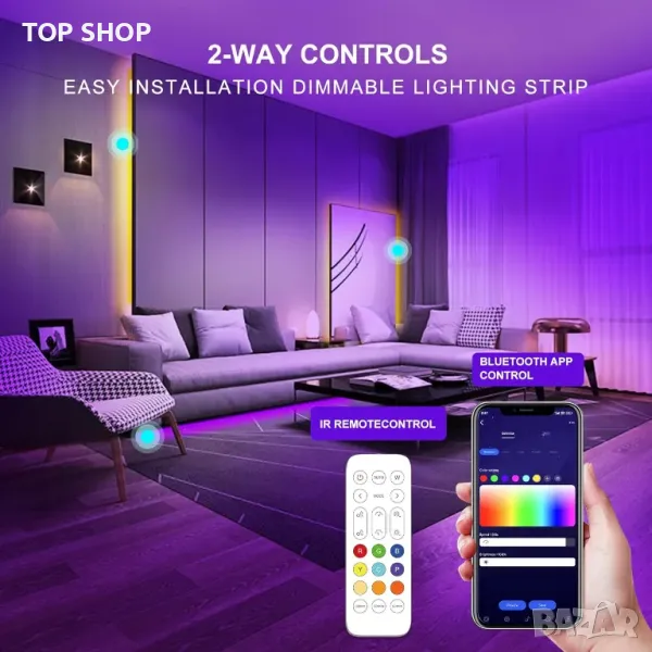 LED лентата TTWAY RGB Smart IC COB предлага 3 метра супер равномерна светлинна мощност с 576 светодиода на метър, идеална за намаляване на умората на очите. Може да се управлява чрез 2.4G дистанционно или приложението HomeLinking, което позволява регулиране на яркостта и промени в цвета. Лентата включва музикално синхронизиране, таймер и функция за памет с 18 музикални ефекта и осветление, реагиращо на звука. Той е гъвкав, огъващ се и лесен за инсталиране с издръжливо 3M лепило, подходящо за различни пространства като спални, кухни и бюра. Издръжливият дизайн осигурява дълготрайна употреба и творчески възможности за Направи си сам.