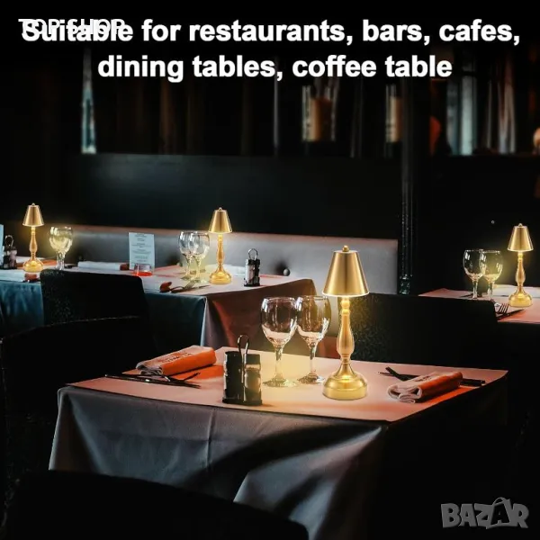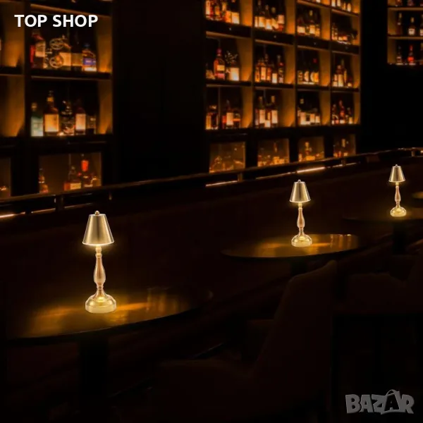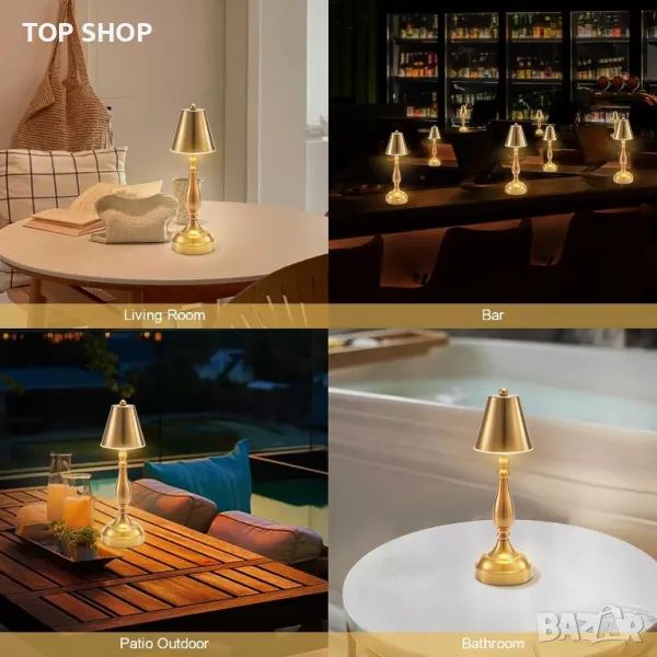 EGOBASIC Акумулаторна безжична LED настолна лампа с батерия, 3 цветна димируема, античен месинг