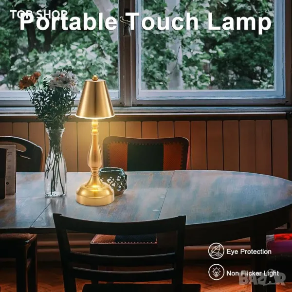 Тази акумулаторна настолна лампа разполага с батерия от 4000 mAh за 10-48 часа безжична употреба след пълно зареждане, в зависимост от настройките на яркостта. Неговото издръжливо, устойчиво на избледняване метално тяло с усъвършенствано галванично покритие позволява поставяне навсякъде, идеално за къмпинг, атмосфера на маса за вечеря или нощни шкафчета за детска стая. Предлага 3 цвята на осветление (студено, топло и естествено) с безстепенно затъмняване чрез сензор за докосване в абажура. Лампата включва 40 ярки LED мъниста и ретро дизайн с тежка основа и акрилен дифузионен панел за мека, нетрептяща светлина. Зарежда се през универсален Type-C порт