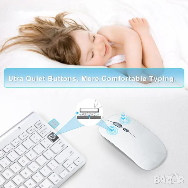 iMac, MacBook, iPad, Mac Mini, настолни/лаптопи с Windows и устройства с Android. Отличаващи се с ултратънък, преносим дизайн, те осигуряват удобно, тихо писане с клавиши Scissor Switch Keys за меко, отзивчиво натискане на клавишите. Plug-and-play настройката осигурява лесно свързване, докато функцията за двойна връзка позволява едновременно сдвояване с две устройства чрез Bluetooth и трето с 2.4G безжична опция. Ергономичната мишка предлага тихо, издръжливо щракване, усъвършенствано позициониране и регулируеми нива на DPI (800, 1200, 1600, 2400), идеални за различни потребителски нужди. Проектиран с мисълта за потребителите на Mac, той съчетава познатост с междуплатформена съвместимост.
