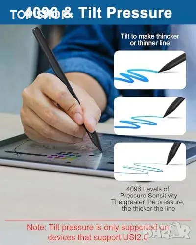 Чувствителност и наклон: 4096 нива на чувствителност към натиск и функция за наклон за прецизно рисуване и писане.