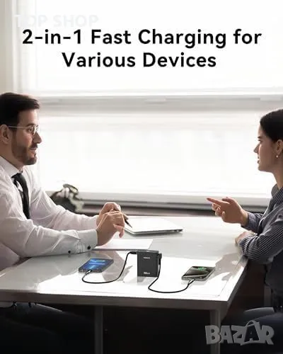 Универсална Съвместимост: Вграден USB-C кабел и отделяща се iOS глава, съвместими с iPhone, Samsung и други устройства.