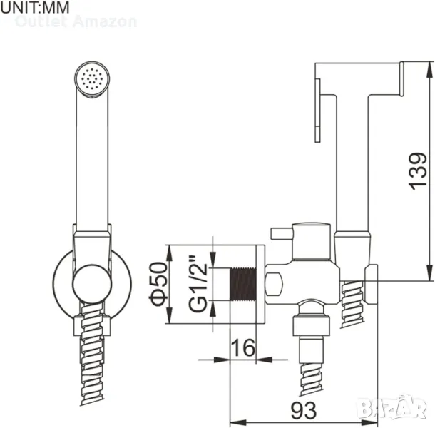 , снимка 3 - Смесители - 49567156 Ръчен комплект пръскачка за биде Ibergrif