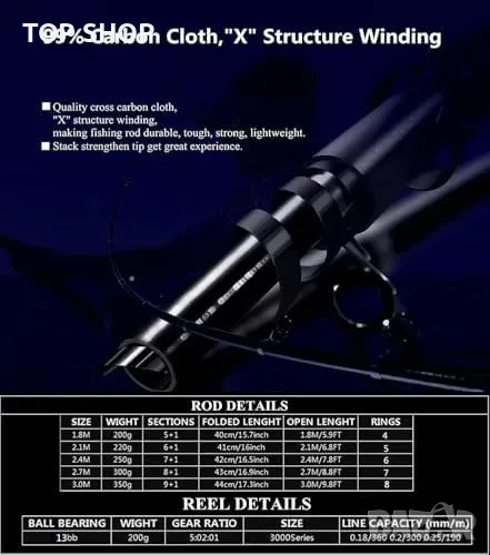 Нова Ултралека телескопична въдица 2.1 м 99% въглеродни влакна за риболов → Обява 49567210