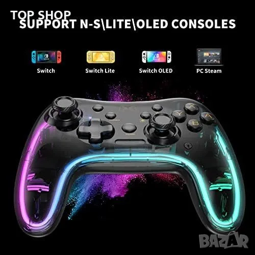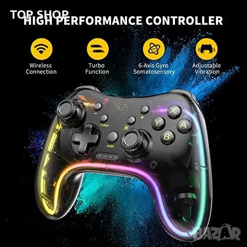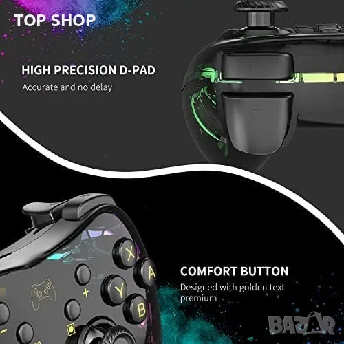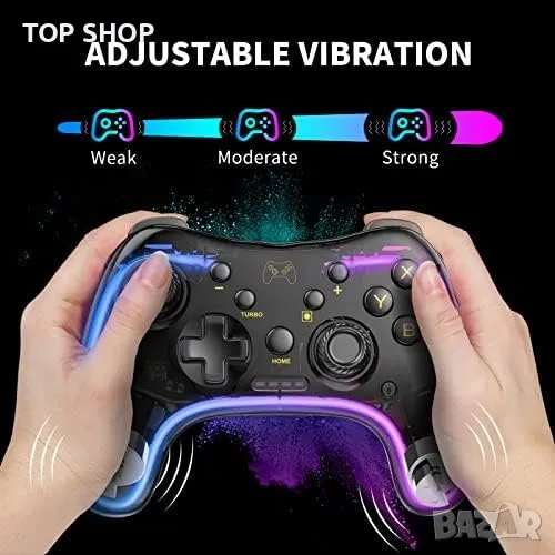 Нов безжичен контролер Switch Pro регулируема вибрация Цветен светодиод