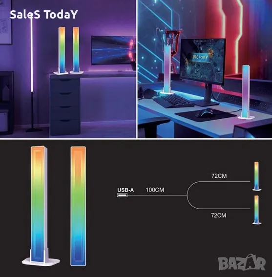 36 RGB Mirror Party LED барове с USB, 5W, с 8 едноцветни режима, с 4 режима на реакция на звука и 8 динамични режима и дистанционно управление с обхват 6,5 м. Има USB кабел 100 см. Захранва се от 3V CR2032 батерия (включена). Могат да се поставят хоризонтално, вертикално и на стена. Съдържа инструкции.