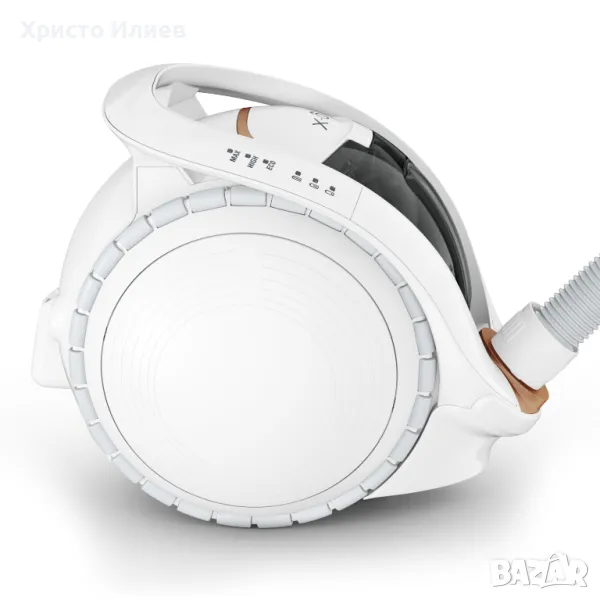 - Неограничена маневреност: Иновативен дизайн за плавно и плавно управление с 58 колела за 360° покритие на всички повърхности и изключителна свобода на движение. Напълно безшумно почистване: при само 69 dB(A) в режим на усилване, ниво на шум, което е малко над това на ежедневните разговори