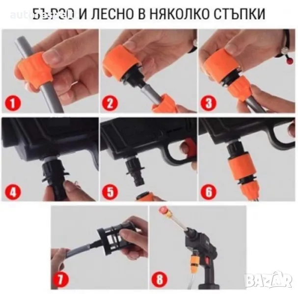 мотоциклети и др., но също и за почистване на балкони, прозорци, палуби, външни стени, подове, огради, градини и др., или места, които трудно се почистват ръчно.