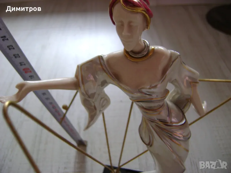 КРАСИВА АВТОРСКА ПОРЦЕЛАНОВА СТАТОЕТКА СЪС БРОНЗОВИ ЕЛЕМЕНТИ