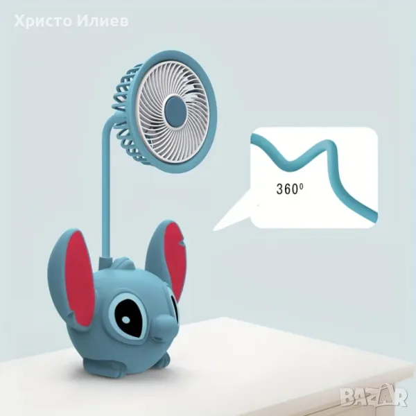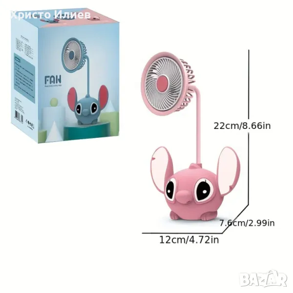 Лило и Стич Вентилатор USB зареждане розов и син Disney Stitch 3D