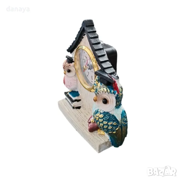 5832 Настолен часовник Къщичка с две бухалчета, 13x12cm