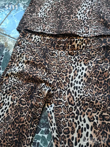 Комплект клин и топ, Terranova в актуален леопардов принт, размер XS. Супер мека материя. Клинът е силно еластичен - състав 92% полиестер, 8% еластан. Горният топ е с по-малка еластичност, състав - 95% памук, 5 % еластан.