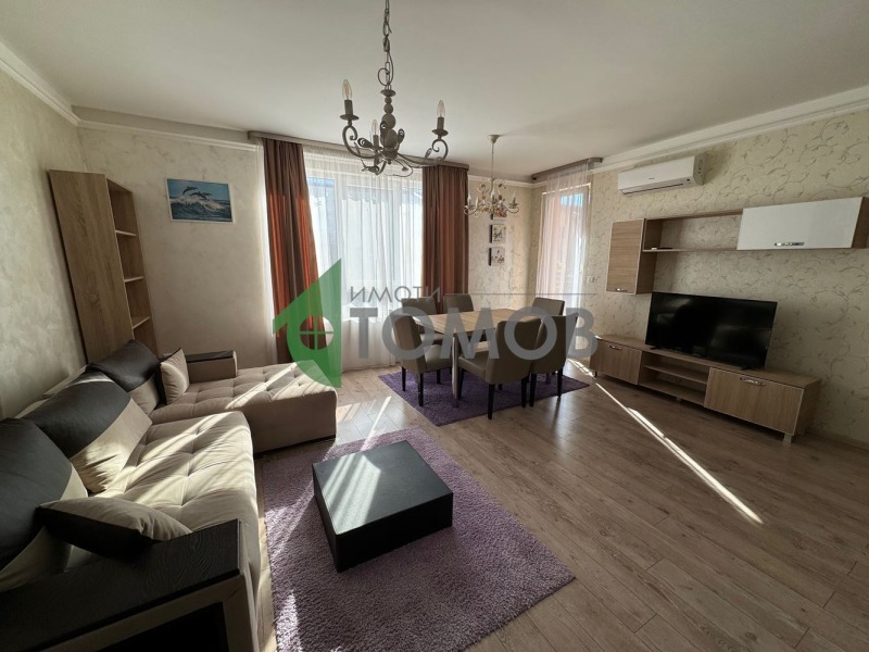 Апартаментът се предлага напълно обзаведен със стилни мебели и модерни електроуреди. Това е идеалното място, където може да съчетаете комфорт, функционалност и елегантност в един луксозен жилищен комплекс.