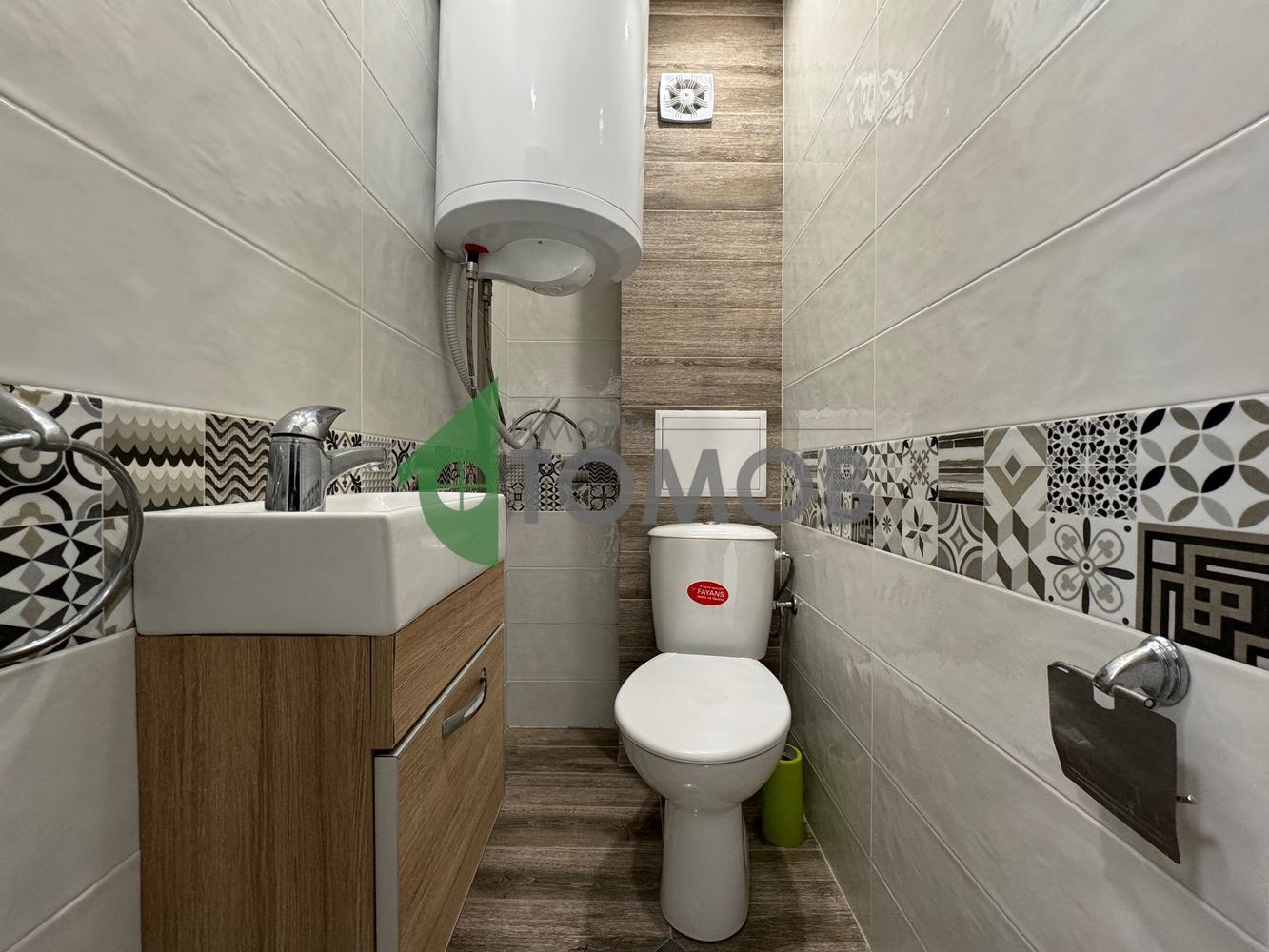 Коридорът на апартамента ви води към светлия и просторен дневен тракт, който включва модерно обзаведена кухня и трапезария. Големите прозорци осигуряват изобилие от естествена светлина и водят към голяма тераса. Апартаментът разполага с две уютни спални, които са подходящи за релакс и отдих след дълъг ден. В добавка към основната баня с тоалетна, има и втора тоалетна за по-голямо удобство на обитателите.