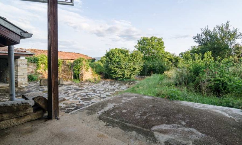 Дворът от 1570 кв.м е просторен и добре поддържан, като разполага с кладенец, гараж и навес за барбекю, осигуряващи допълнителни удобства за комфортен начин на живот. Къщата е с изцяло подменени ВиК и електроинсталации, съчетавайки автентичен селски стил със съвременни подобрения.