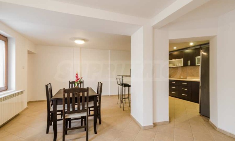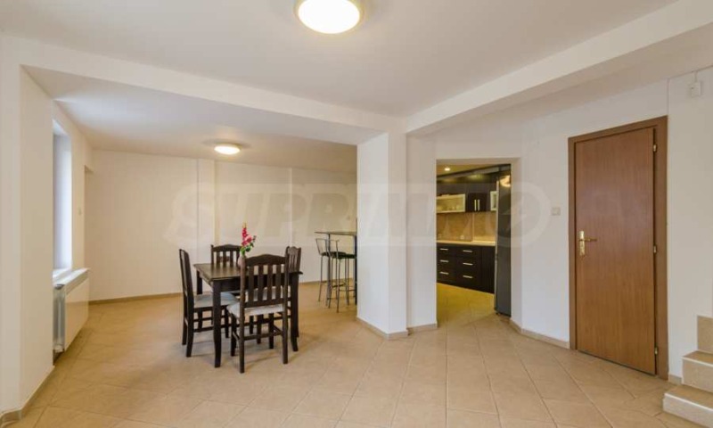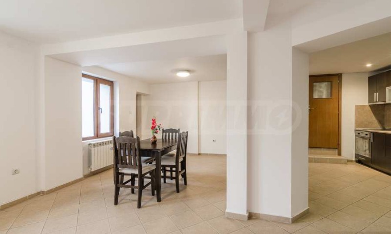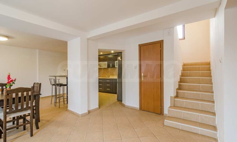 На приземния етаж ще откриете просторна кухня, трапезария, хол и една спалня. Освен това, има и самостоятелен апартамент с една спалня, който разполага с отделен вход от градината. На същото ниво се намират две бани. Горният етаж включва четири спални и три бани, като една от спалните има самостоятелен достъп през външно стълбище и тераса. В подпокривното пространство е обособен малък апартамент със собствена баня и тераса.