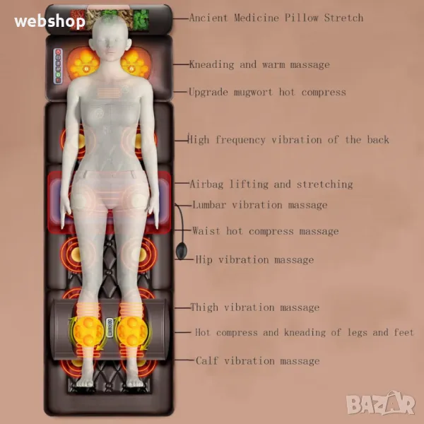 Масажни зони: Гръб, кръст, крака, цяло тяло;