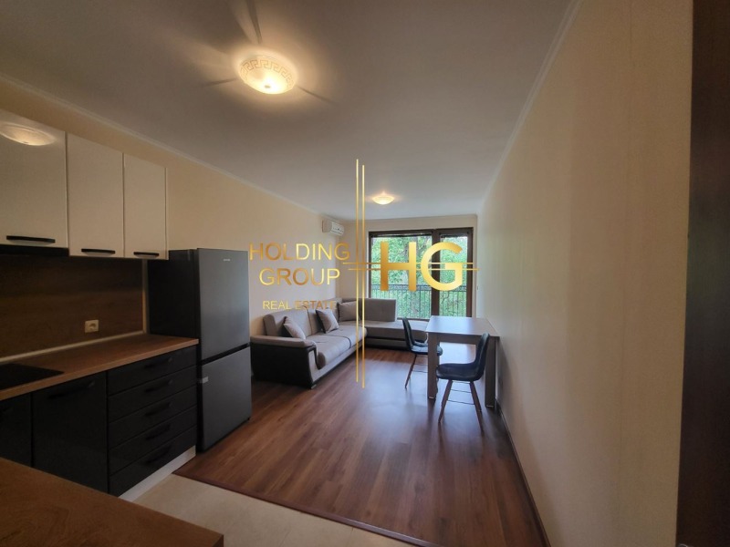 ЕКСКЛУЗИВНО ОТ HOLDING GROUP REAL ESTATE! Представяме на Вашето внимание чудесен двустаен апартамент с морска панорама в района на Ален Мак. Жилището е разположена в сграда с акт16 и асансьор, а разстоянието до плажа е само 350м. В близост до имота се намират спирки на редовния градски транспорт, магазини и ресторанти. Разпределението е следното: входно антре, просторен дневен тракт с кухненски бокс, с достъп към тераса, спалня, с достъп към тераса и комбиниран санитарен възел. Апартаментът се предлага напълно оборудван и обзаведен, с цялата налична техника! В района има възможност за свободно паркиране, както и опция за паркомясто. Комплекса разполага с басейн, отлично поддържани общи части и видеонаблюдение. Отличен имот за целогодишно живеене или инвестиция /дългосрочен наем или нощувки/. Заповядайте на оглед!