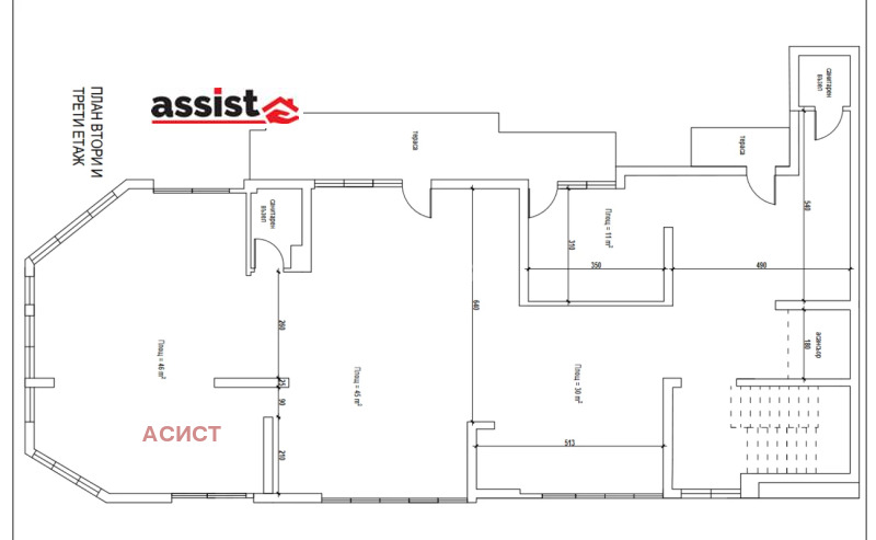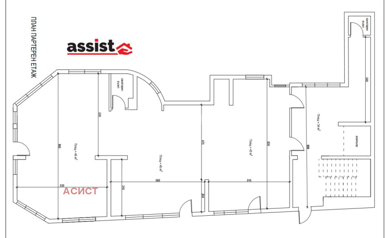- партер - 220кв.м., с големи витрини към ул. Тракия.