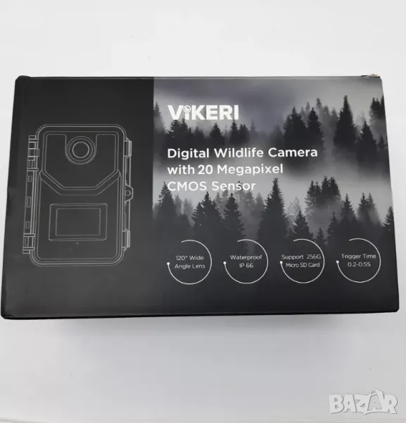 Камерата за пътеки Vikeri A1 има 120° широкоъгълен обектив и сензор за движение, който заснема снимки и видеоклипове с време за задействане от 0,2 секунди. В допълнение, камерата за игри Vikeri A1 има 940nm осветление без светене, така че да не изплаши играта ви. Камерата A1 е оборудвана със сензор Sony EXMOR IMX377 с нисък шум и създава висококачествени дневни изображения. Въпреки това нощните снимки и видеоклипове при слаба светлина са с ниско качество. Въпреки че камерата има опция за заключване на ключалката на вратата, на камерата липсва опция за заключване с кабел. Подобно на повечето камери за следи, камерата Vikeri A1 прави цветни изображения през деня, а нощните снимки и видеоклипове са черно-бели. Камерата на играта може да записва видеоклипове със звук. Камерата е водоустойчива и прахоустойчива, така че можете да я използвате, когато навън вали дъжд или сняг. Информационната лента обаче е ненужно голяма и покрива значителна част от изображението.