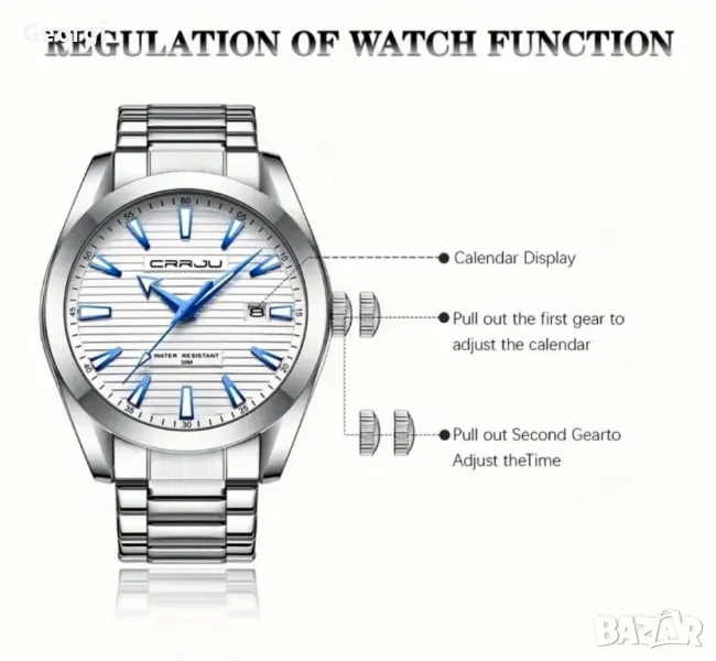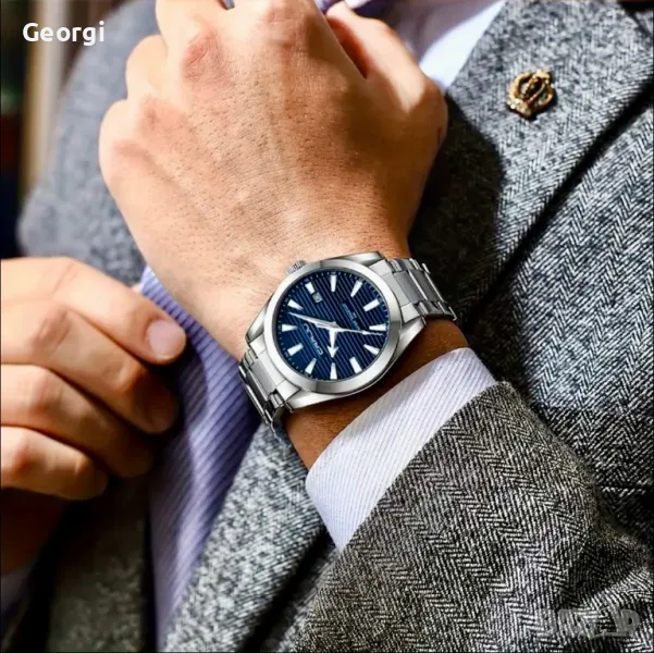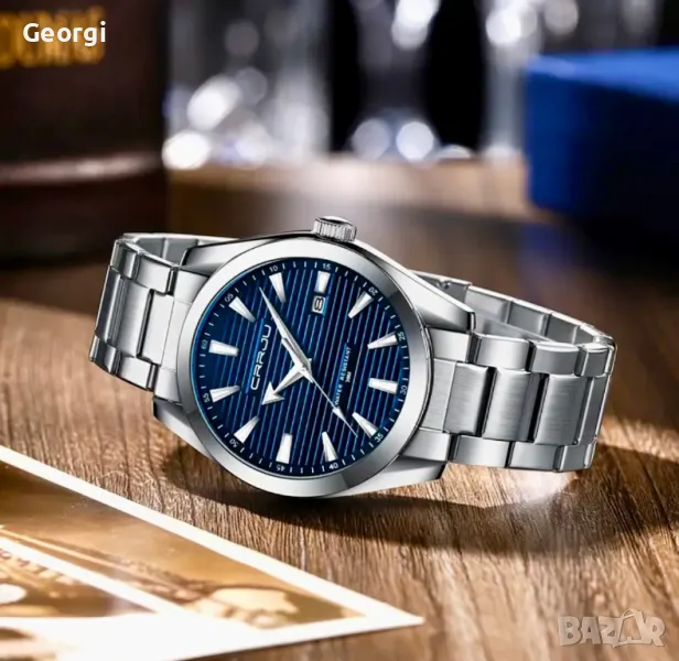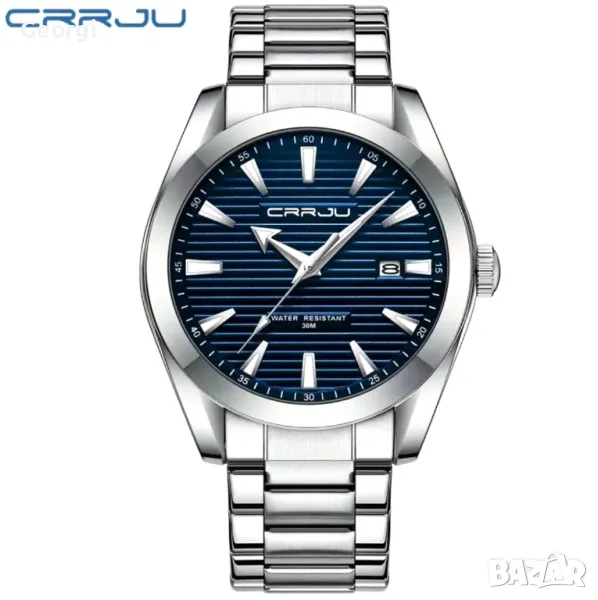 Мъжки елегантен и удобен бизнес кварцов часовник CRRJU* със Син циферблат и сребриста стоманена каишка!