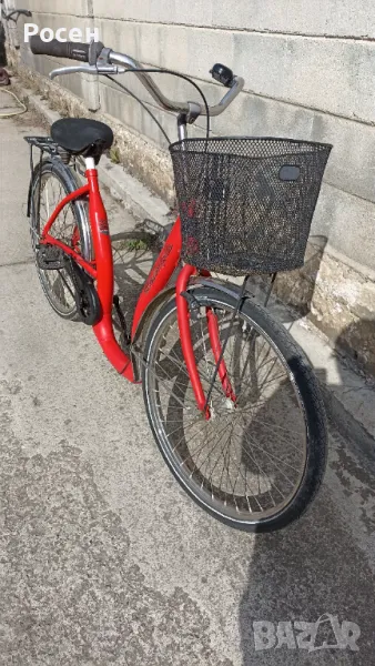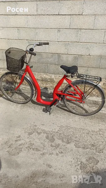 Продавам велосипед Rheinfels 26 "цола гуми ,ниска рамка,удобна за прекрачване,с контра,звънец,багажник,кошничка,три скорости Sram.Внос от Германия.