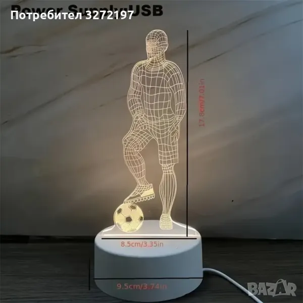 Холограмна 3D LED лампа - Футболист → Обява 49574031