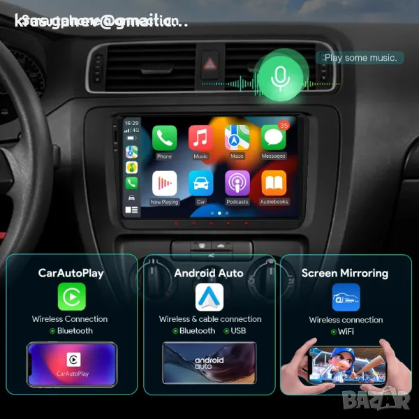 Car Play/Android Auto & Screen Mirroring Безжично Car Play или Android Auto (безжично или кабелно) ви дава възможност да осъществявате достъп до любимите си мобилни приложения по-интелигентно и безопасно. Поддържа се и дублиране на екрана. Моля, имайте предвид, че тази стереоуредба за кола може да използва само избирателно една от тези три функции едновременно.