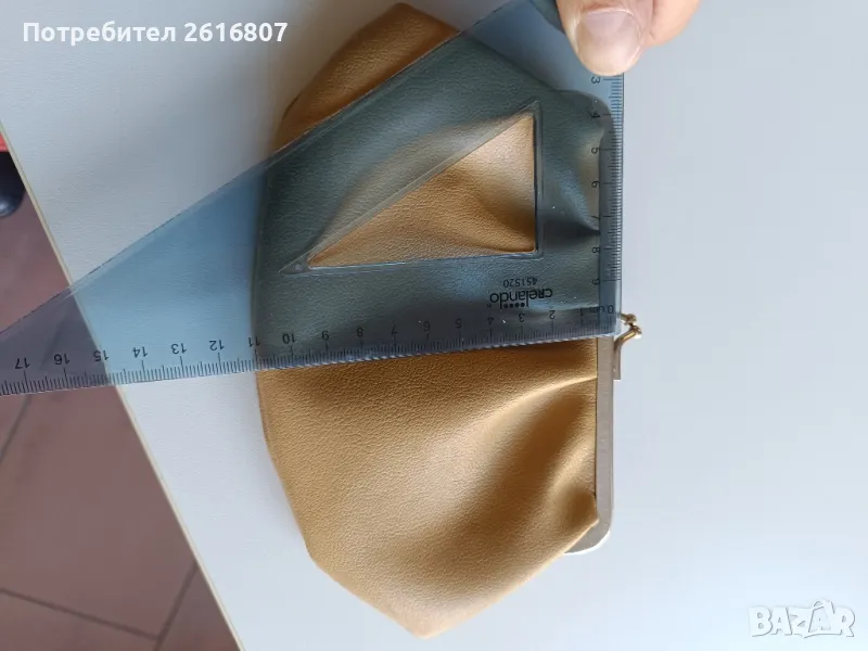 Дамско портмоне от естествена кожа.От времето на соца.Много добре запазено без скъсано одраскано.Вътре подплатата е със следи от употреба.Размери ширина 19 см височина 11 см без закопчалката.