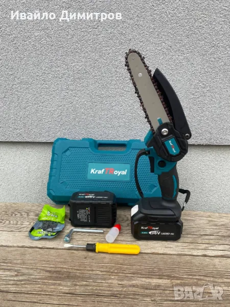 Акумулаторен Трион За Клони KraftRoyal 36v 8ah + 2 Вериги, 15 См Шина