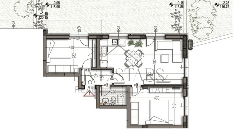 ФАЙВ СТАРС предлага тристаен апартамент в новострояща се сграда, в спокоен и същевременно с отлична инфраструтура район. В близост са магазини, спирка, училище и дестки заведения.