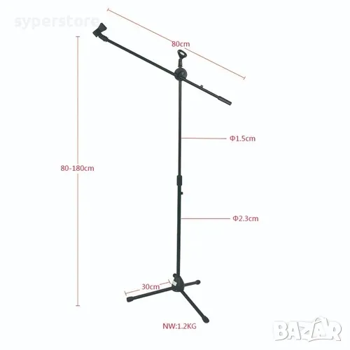 Тази висококачествена стойка за микрофон е проектирана да отговори на нуждите както на професионални изпълнители, така и на музиканти. Стойката е изработена от издръжлив метал, осигуряващ дълготрайна и надеждна конструкция, допълнена от нейното елегантно черно покритие, което добавя професионален щрих към всяка сцена или студио.