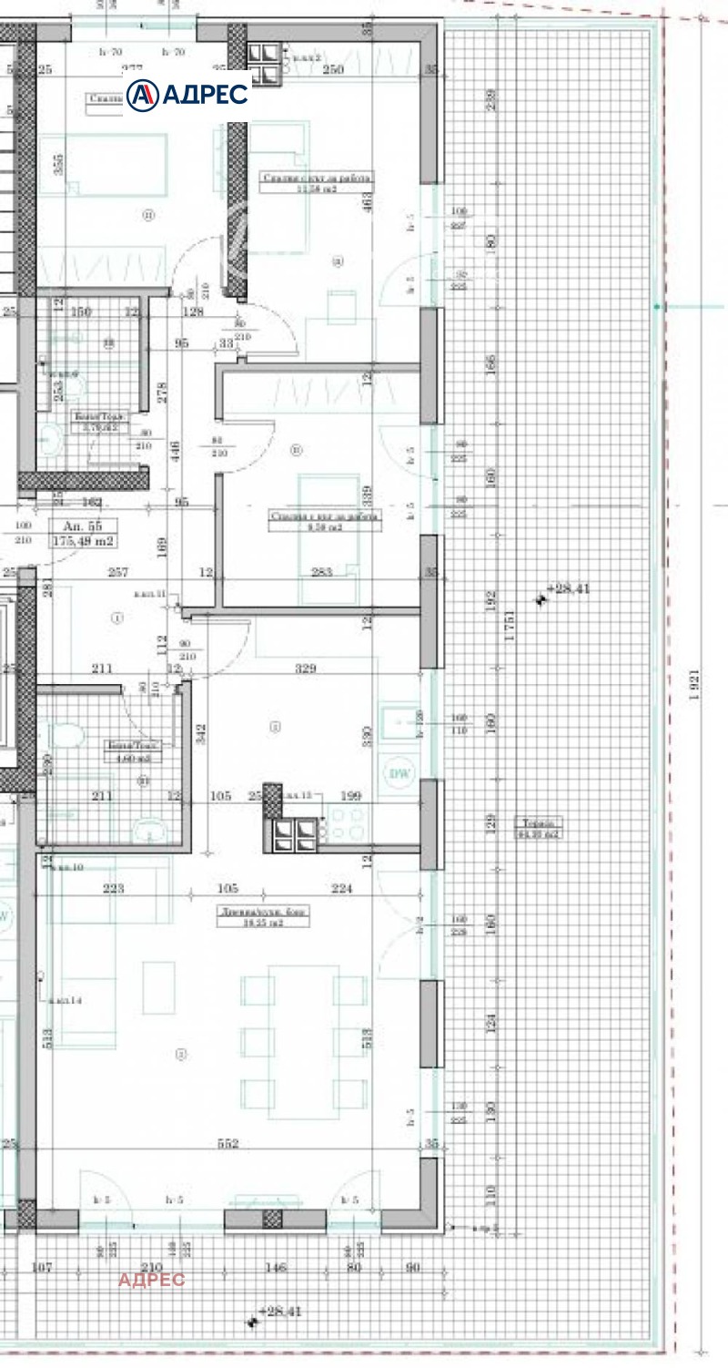 Многостаен тухлен апартамент с чиста жилищна площ 175,49 кв. м, състоящ се от голям дневен тракт, три спални, две бани с тоалет, голям балкон и маза. Жилището е функционално и просторно разпределено, ориентирано изток. Към него има и възможност за закупуване на открито и закрито паркомясто. Предвидена е степен на завършеност по БДС, което предоставя възможност да довършите и обзаведете своя дом според личните си предпочитания.