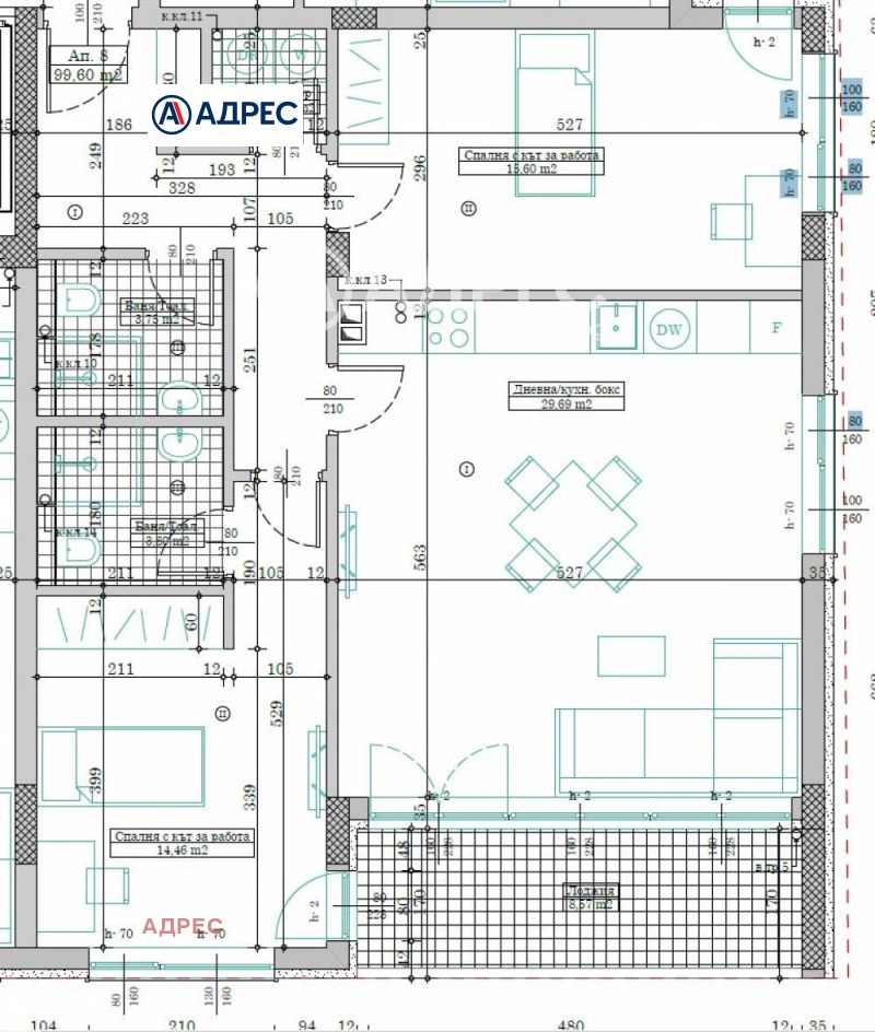 Тристаен тухлен апартамент с чиста жилищна площ 99.60 кв.м, състоящ се от дневен тракт, две спални, две бани с тоалет, килер, балкон и маза. Жилището е функционално и просторно разпределено, ориентиране изцяло на югоизток. Към него има и възможност за закупуване на открито и закрито паркомясто. Предвидена е степен на завършеност по БДС, което предоставя възможност да довършите и обзаведете своя дом според личните си предпочитания.